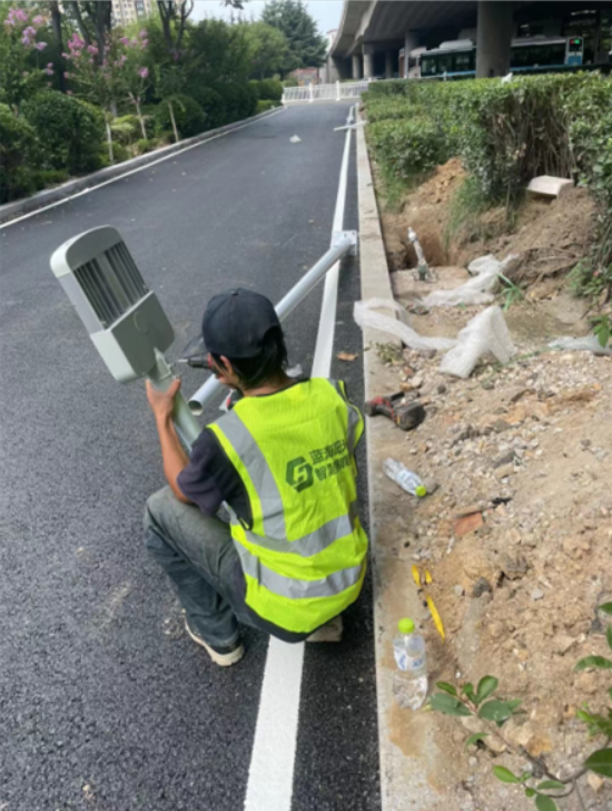 青島海爾路多功能LED指示路燈安裝完成,交付使用