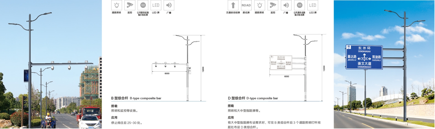 3. 布局形式:采用多桿合一的布局形式,將不同功能的桿件進行組合,如路燈桿、交通信號桿、監控桿等,以實現資源的共享和優化。