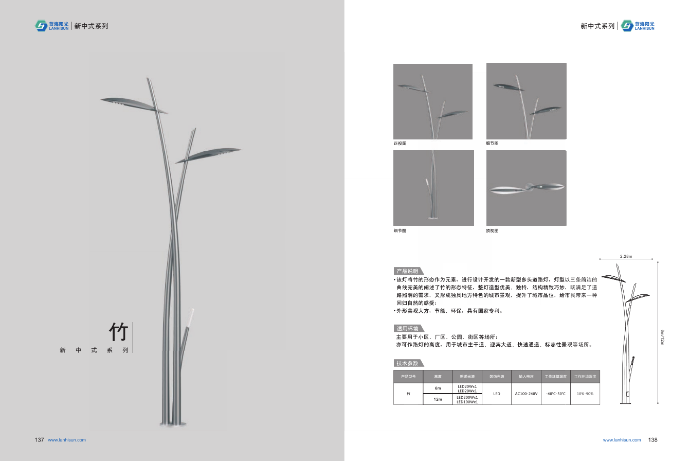 1、高度為6-16米; 2、花葉光源為2組LED光源,色溫2500-6500K,每個光源功率為60-300W; 3、LED驅動電源壽命可達五年; 4、整體熱鍍鋅噴塑,保證燈桿15年不生銹; 5、可以根據使用地區的地域文化、產業特點等進行文化定制;