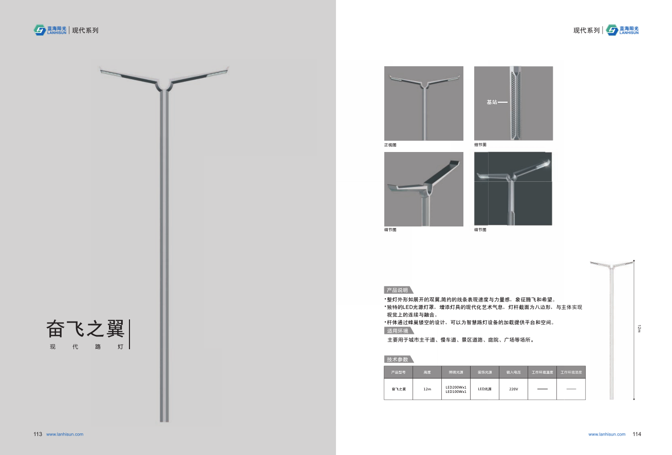 1、高度為6-16米; 2、光源為2組LED光源,色溫2500-6500K,每個(gè)光源功率為60-300W; 3、LED驅(qū)動(dòng)電源壽命可達(dá)五年; 4、整體熱鍍鋅噴塑,保證燈桿15年不生銹; 5、可以根據(jù)使用地區(qū)的地域文化、產(chǎn)業(yè)特點(diǎn)等進(jìn)行文化定制;